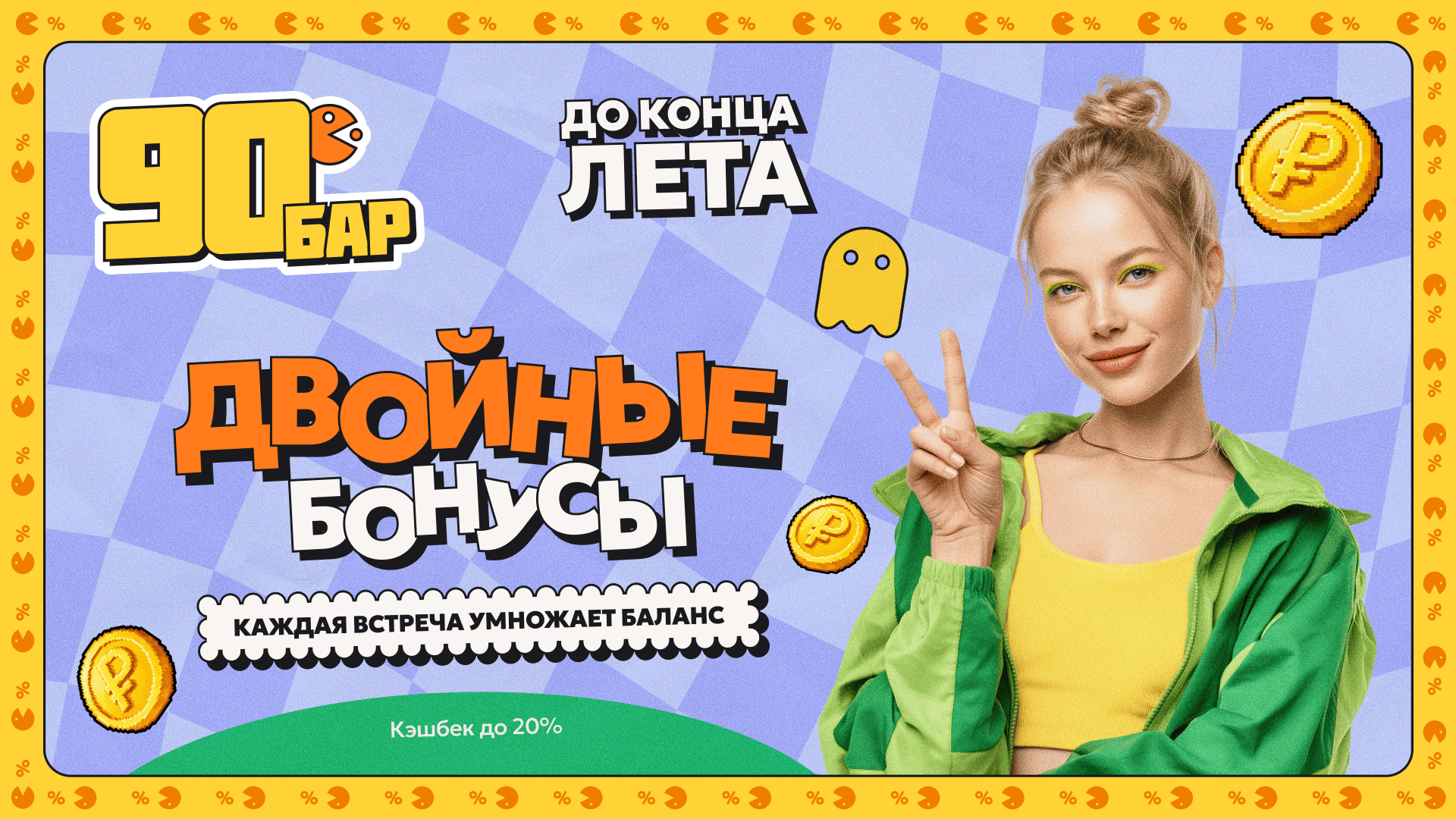 Двойные бонусы для тех, кто любит отдыхать с выгодой. Получай повышенный кэшбэк до 20% с каждого счёта и копи бонусы ещё быстрее. А потом используй их для оплаты до 50% от суммы заказа. Чем чаще приходишь — тем выгоднее становятся твои вечера.